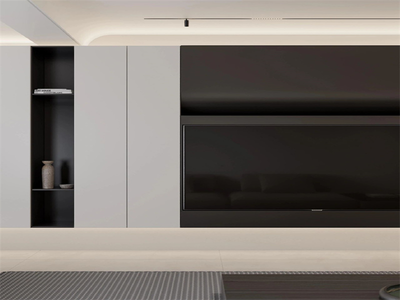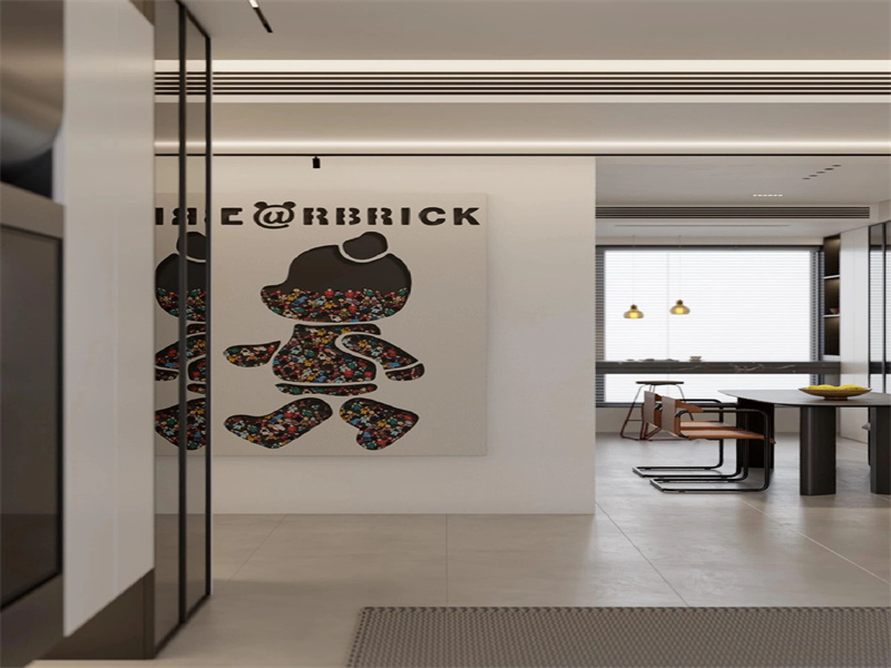 客廳整體采用灰白與極簡黑搭配,整體白色的墻面讓空間顯得更加簡約純粹,