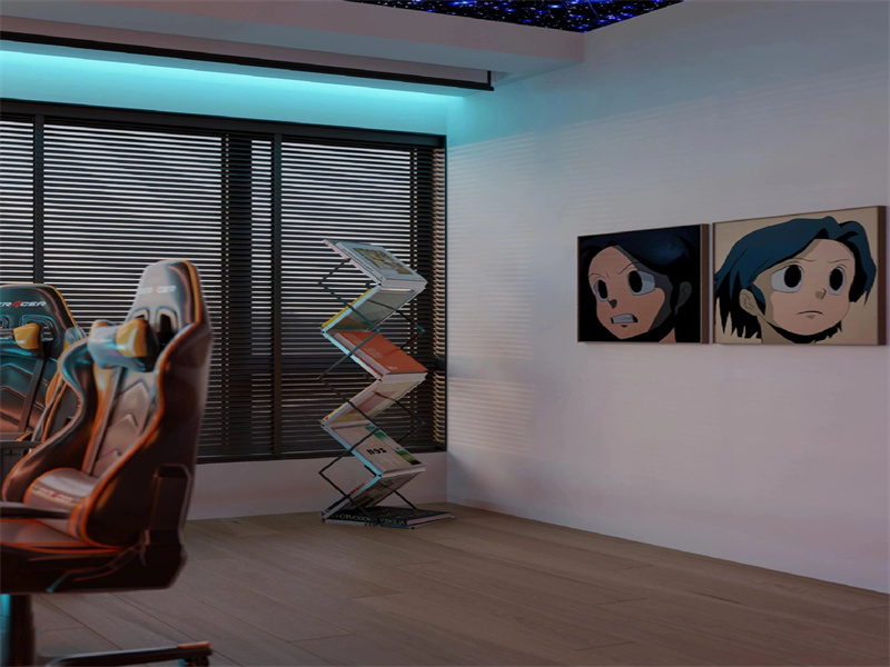 電競房選擇智能家具與不規(guī)則的幾何線條層層鋪疊,未來感的線性燈光成為空間