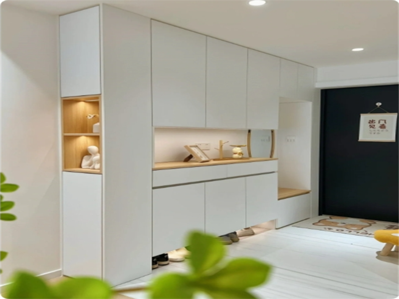 打造白色通頂玄關(guān)柜,滿足不同收納需求,顏色呼應(yīng)的同時,豐富客廳的空間層次感